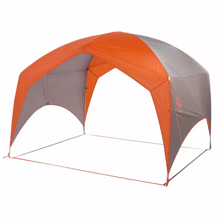 High-volume architecture provides a cavernous shelter built for the car-camping family or bike-riding buddies who want to stand up to change