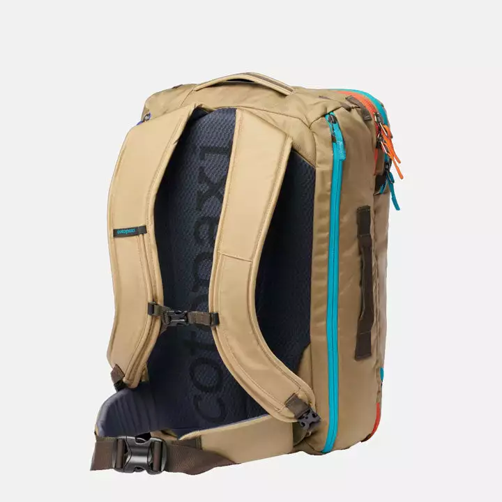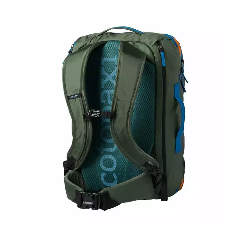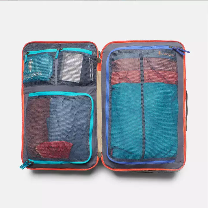 The Allpa 35L’s shell is made from a blend of tough, TPU-coated 1000D polyester, with durable 840D ballistic nylon paneling. We then adopted the low-profile harness we use for our backpacking packs to create a suspension system that distributes weight and keeps you comfortable through journeys near or far. The system includes contoured shoulder straps for comfort and balance, plus a removable hip belt you can take off when you don’t need it, or for when you’re stowing the pack in tight compartments. A breathable, flexible airmesh back panel and an adjustable sternum strap create an even more comfortable carry. There’s a suitcase-style, full-wrap zipper opening on the main compartment that opens into a large, zippered mesh compartment on the right side and a subdivided zippered mesh compartment on the left. These compartments open outward for easy and organized packing, and now feature an updated zipper gusset to create dynamic compression. This compression makes it easier to zip your Allpa closed when it’s packed tight. Two zippered pockets round out the top.