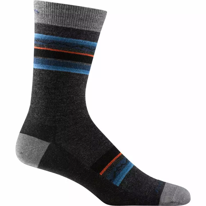Stripes with a mountain range give the Whetstone its work up front, party in the back mentality. Climate-controlling, lightweight Merino knit, plus guaranteed for life durability in this every day sock, is why we named it after the road our mill is on.