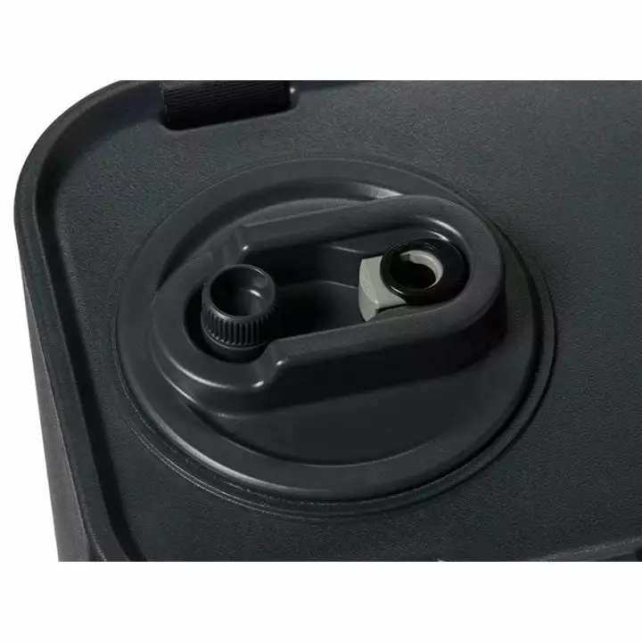 - Designed to be easy to lift and dispense, it has a flow reducer for easy pouring, webbing handles for carrying and built-in tie-down guides