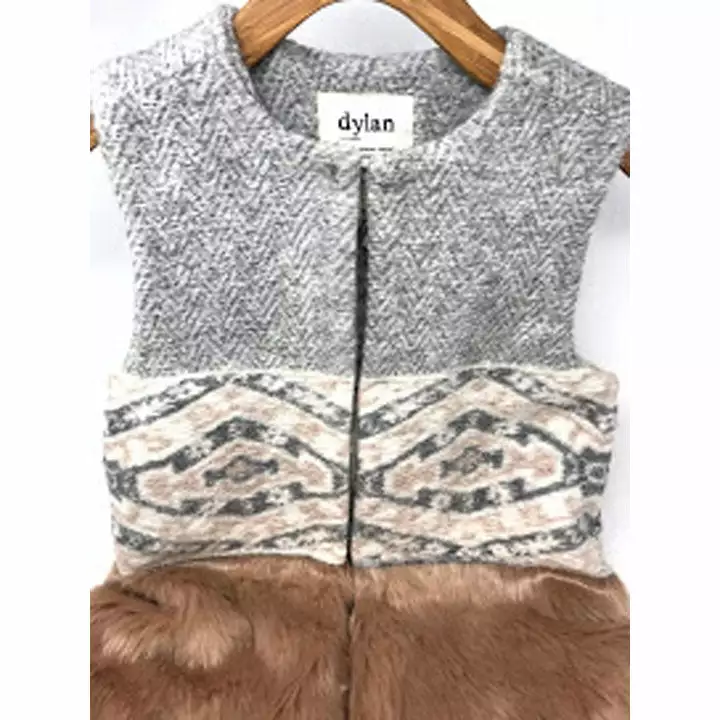 Dylan By True Grit Dylan Heather Melange Tweed Blanket Fur Vest Womens