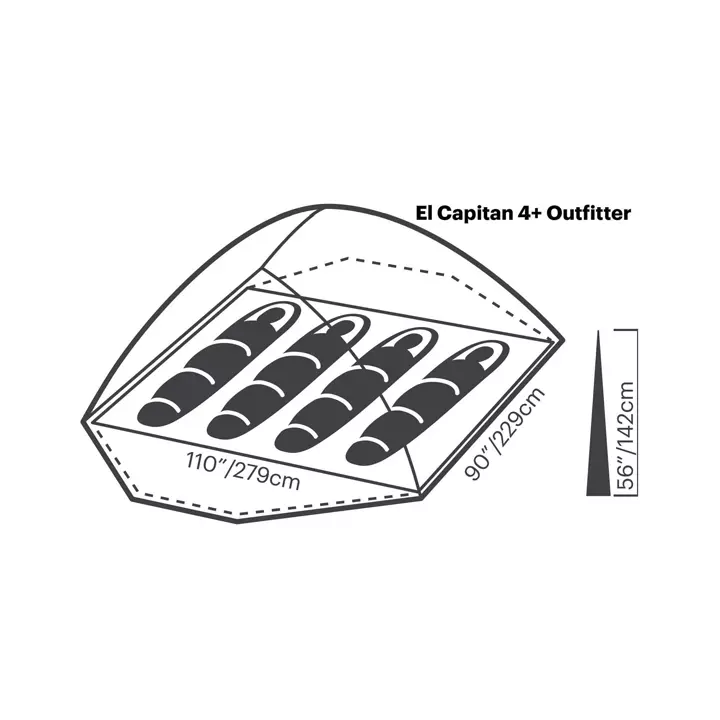 BUILT TO OUTFITTER GRADE SPECIFICATIONS FOR UNMATCHED DEPENDABILITY AND PERFORMANCE. The El Capitan 4+ Outfitter is a classic, 2-pole dome architecture with integrated ridgepole to shed wind and rain while providing additional head and shoulder space. 15% more floor space than traditional designs provides extra room for gear. Heavy-duty, 150D floor fabric defends against premature abrasion and punctures. Oversized, YKK brand zippers provide long-term durability in adverse conditions.
