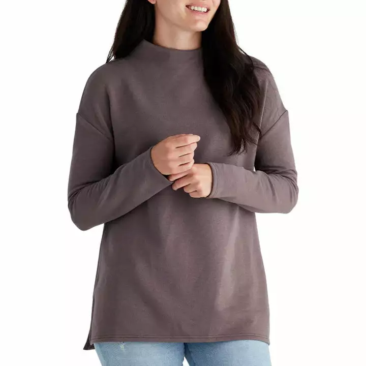 This pullover has the comfort of a sweatshirt without the frumpy feel. Comfy enough to wear with leggings, but tailored enough to wear to the office.ÂÂ
