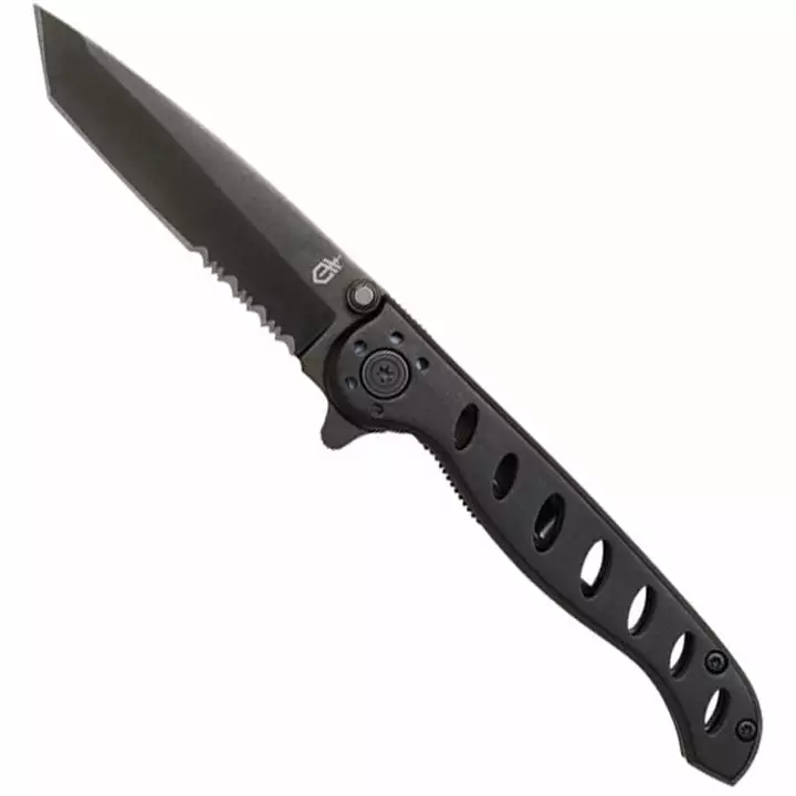A knife that fits in between the EVO and the EVO Jr., the EVO Mid sports a tactically styled Tanto blade and low-rise pocket clip. Its partially serrated blade is made with surgical grade stainless steel and is treated for strength and corrosion resistance. It has a liner lock mechanism for one-handed closing and a finger flip for easy opening. The Mid is a tactically designed, lightweight, everyday carrier.