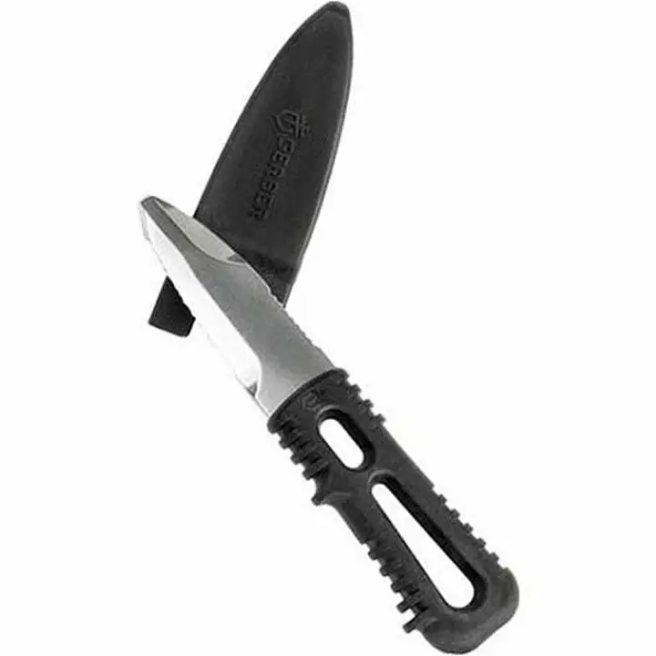 An excellent water sports knife, the Gerber River Shorty excels in responding to the unique requirements of rafting, paddling and diving. With its sturdy stainless steel blade, extremely light glass-filled nylon handle, and deliberately stunted tip, the River Shorty can be carried into a myriad of high-difficulty water-related situations in its sheath designed expressly for mounting onto a PFD.