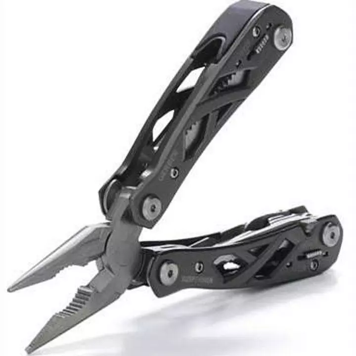 Inspired by the bridges of Gerber’s hometown in Portland, Oregon, the Suspension is an open frame multitool with spring-loaded pliers, the Saf.T.Plus™ locking system, a fine-edge knife, serrated knife, rough cut saw and more. Housed in a ballistic nylon sheath, it’s a lightweight down-and-dirty workhorse.
