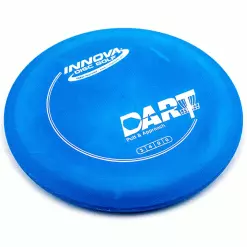 The Dart is a small diameter putter with a straight flight. The Dart is especially good for long range putts and go-for shots. It has a flight similar to our Aviar Putt & Approach but has less low speed fade and a little more range. The nice thing about this disc, besides the improved grip, is that it holds the line for a long time.