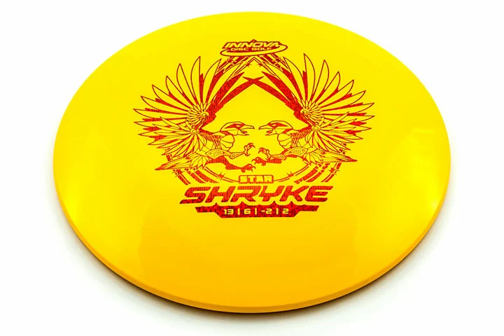 The Shryke is an easy to throw, very long range driver for a wide variety of players. A mild high speed turn puts the Shryke in glide mode, which along with its high aerodynamic speed, give it incredible distance. The low speed fade is also mild, which makes it easy to keep on the fairway. The Shryke is similar to our popular Tern but faster and slightly more high speed stable.