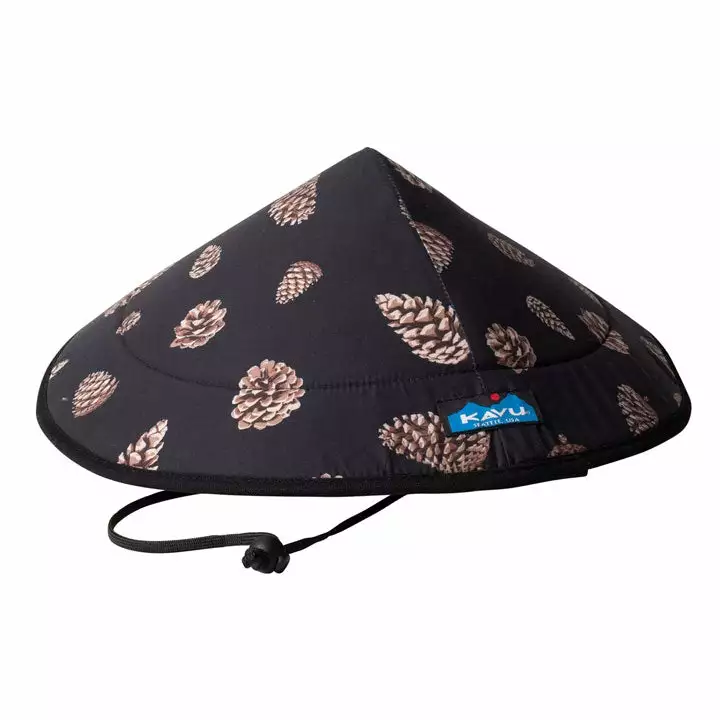 Semi padded circular shaped hat with toggle lock, quick-dry poly mesh headpiece, patterned nylon tubular webbing with KAVU adjustment.ÂÂ