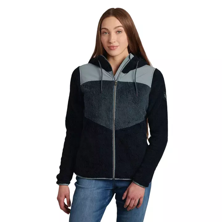 With a high warmth to weight ratio, the all-new KÜHL PRISM™ Women’s Hoody delivers cozy, breathable comfort in a fresh and fun color-block design. Looped yarn provides excellent insulation with no shedding. Softshell shoulders offer protection when carrying gear. A sleek and low bulk design makes an ideal mid-layer when the temperature plummets.