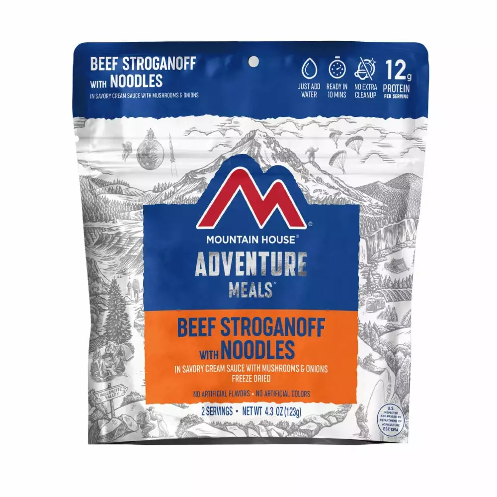 - Pouch: The perfect size of freeze dried beef stroganoff for those weekend car camping trips. While everyone is nibbling away at their sad PB&Js, you’ll be helping yourself to a comforting helping of home cooked goodness.