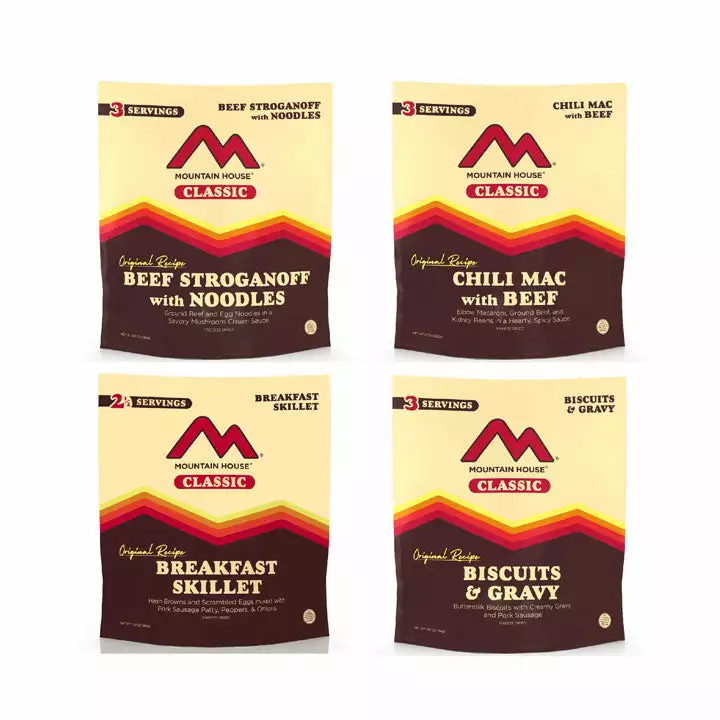 Enjoy one pouch each of the below classic recipes in the Mountain House Classic Kit: