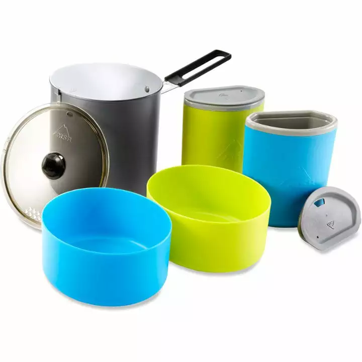 The Trail Lite Duo System delivers all the lightweight, space-saving benefits of a minimalist cookset, without forcing you to be Spartan about what you cook. It features our all-new, ceramic nonstick coating that’s not only the most durable coating we’ve ever found, but also PTFE- and PFOA-free, for those seeking a greener alternative in their cookware. The system includes DeepDish™ Bowls, 11 oz. Double-Wall Insulated Mugs color-coded for two, and comes with a clear, BPA-Free strainer lid and folding, locking handle.