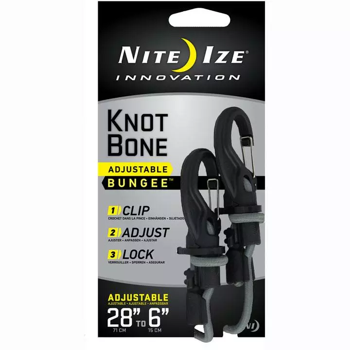 Take the KnotBone Adjustable Bungee, for example. With carabiner clips instead of open hooks at each end, it not only attaches to your anchor points, it locks there. Instead of elastic that loses its stretch over time, the KnotBone Bungee has a durable, high quality cord that threads through each end, adjusts from 48″ to 10″ in the #9 size and from 28″ to 6″ in the #5 size. Once you have it adjusted to the right length, secure it in place with a simple wrap-and-lock motion. We’ve even added small self-clipping plastic caps to the cord ends to keep them in place once you’ve got your load secured. No more pulling, stretching, and re-hooking to get the tension you want – job after individual job, the KnotBone Bungee stays right where you attach it, pulls securely to the exact length you need, and locks there.