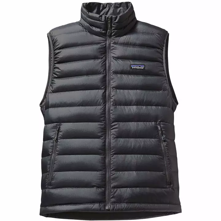 Simple, lightweight core warmth. The Down Sweater Vest’s minimalist design practically floats; its ethically sourced and traceable 800-fill-power down seals in warmth, yet it’s so compact that it stuffs into an internal pocket (with a carabiner clip-in loop). The revised 100% recycled polyester shell with a DWR (durable water repellent) finish provides wind and weather protection as well as a high tear-strength; updated quilting lines stabilize the down; now with a more contoured fit and slightly longer torso. The drawcord hem tightens from inside the zippered handwarmer pockets, and nylon-bound elastic armholes seal in heat.