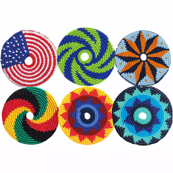 The world’s farthest flying Pocket Disc, the El Grande. With 8 threads per knit and a full 8 inch diameter, the El Grande stands up to the breeze and the fur babies.