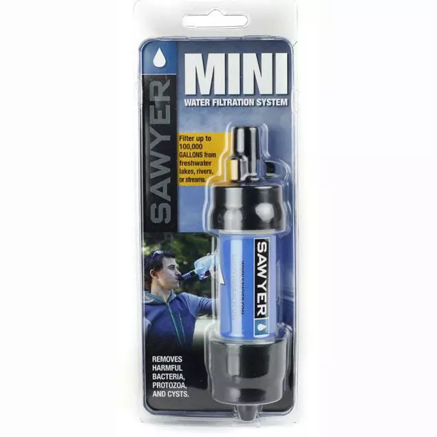 The Sawyer Mini is ideal for outdoor recreation, hiking, camping, scouting, domestic and international travel, and emergency preparedness. This high performance Mini filter fits in the palm of your hand, weighs 2 ounces, and filters up to 100,000 gallons (30 times more than comparable filters). It attaches to the included drinking pouch, standard disposable water bottles, hydration packs, or use the straw to drink directly from your water source.