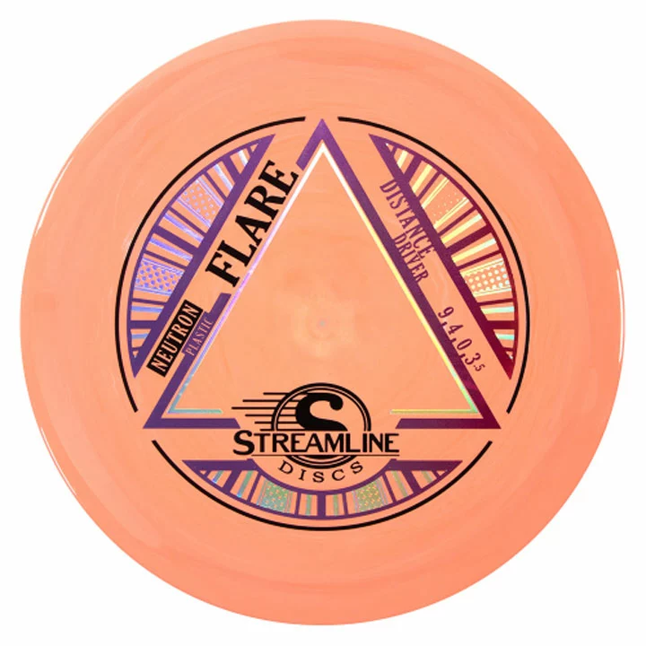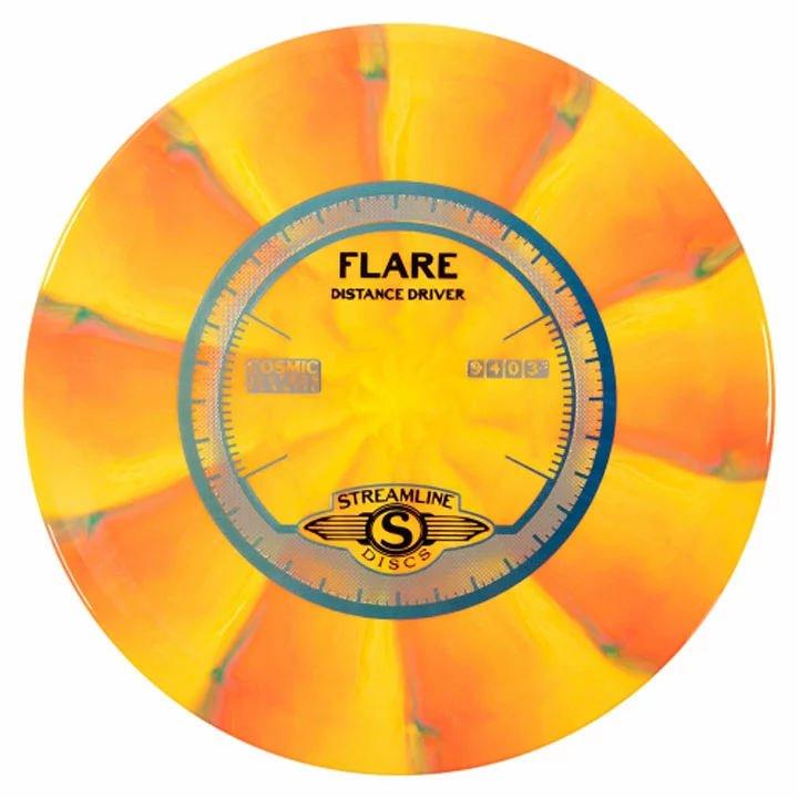 The Flare is the first overstable distance driver from Streamline and is designed for flights with a minimal turn, ending with a powerfully overstable finish, and a reserved glide to prevent going long on the approach. The Flare debuts the new 19mm Driver class making it the first Streamline Speed 9 disc. A truly versatile disc whether fans are looking for something that can handle even the highest power throws, fighting the strongest winds, or for a wide range of utility shots, the Flare can handle them all. Burning brightly on the course, the Streamline Flare is coming to the rescue!ÂÂ