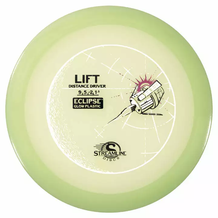The Lift is Streamline’s understable distance driver, designed as a straight flying driver with a comfortable rim size and slightly domed profile. It is the second disc along with the Flare in the 19mm Speed 9 Driver Class for Streamline. In Streamline Neutron Plastic the Lift has premium grip and durability, along with a huge variety of Neutron and Cosmic Neutron color options. For controllable flight lines with effortless glide, activate Bernoulli’s principle with the Streamline Neutron, Proton and Cosmic Neutron Lift!
