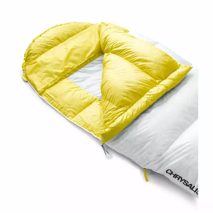 The Chrysalis 20 is a 900-fill down sleeping bag, purpose built for ultralight backpacking. We made every consideration to minimize weight while maintaining comfort, to the point that we removed unnecessary insulation from the back of the bag, where the sleeping pad would typically be. It’ll keep you cozy at night but won’t weigh you down during the day.